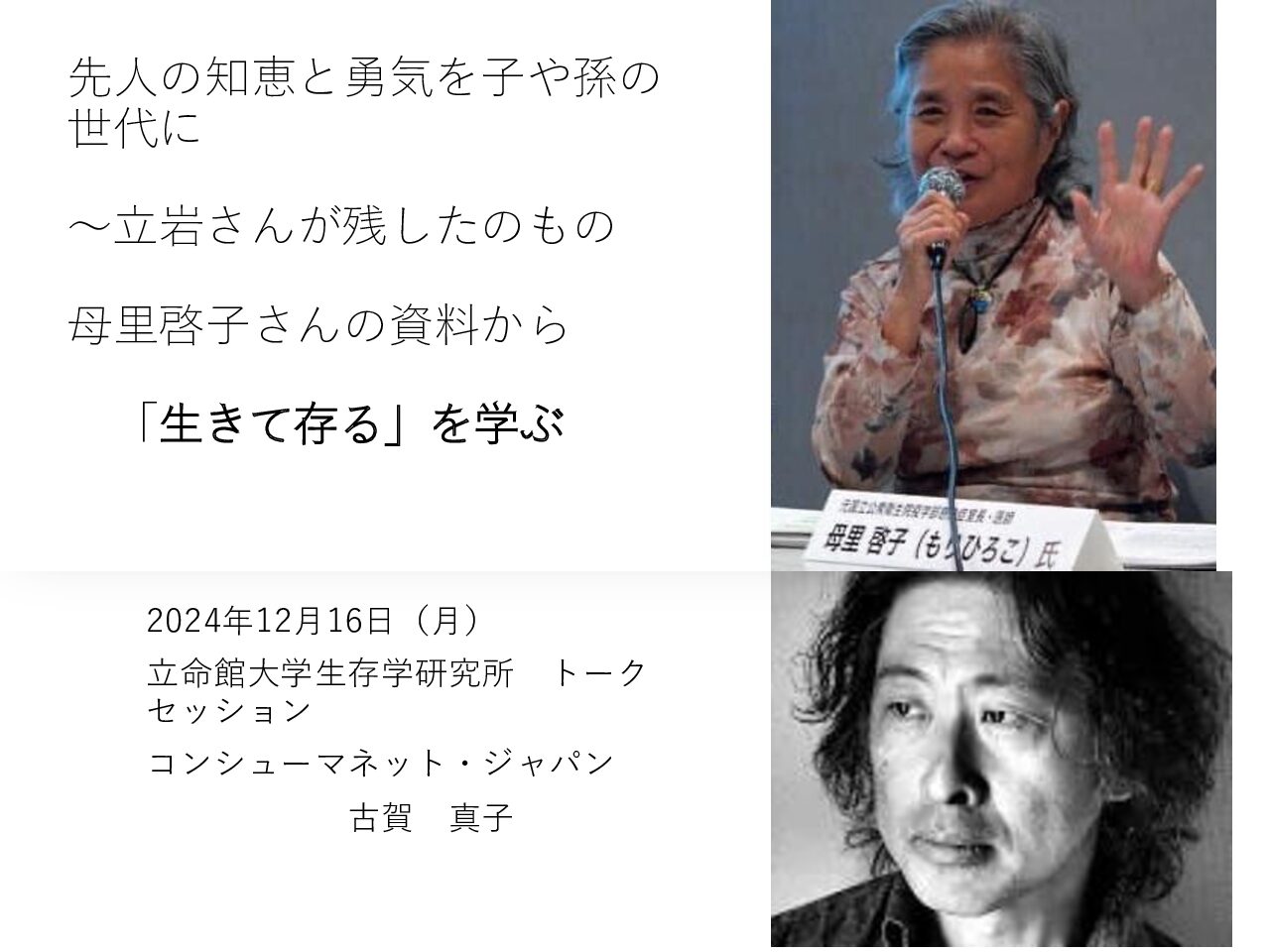 立命館大学生存学研究所 トークセッション コンシューマネット・ジャパン 古賀 真子