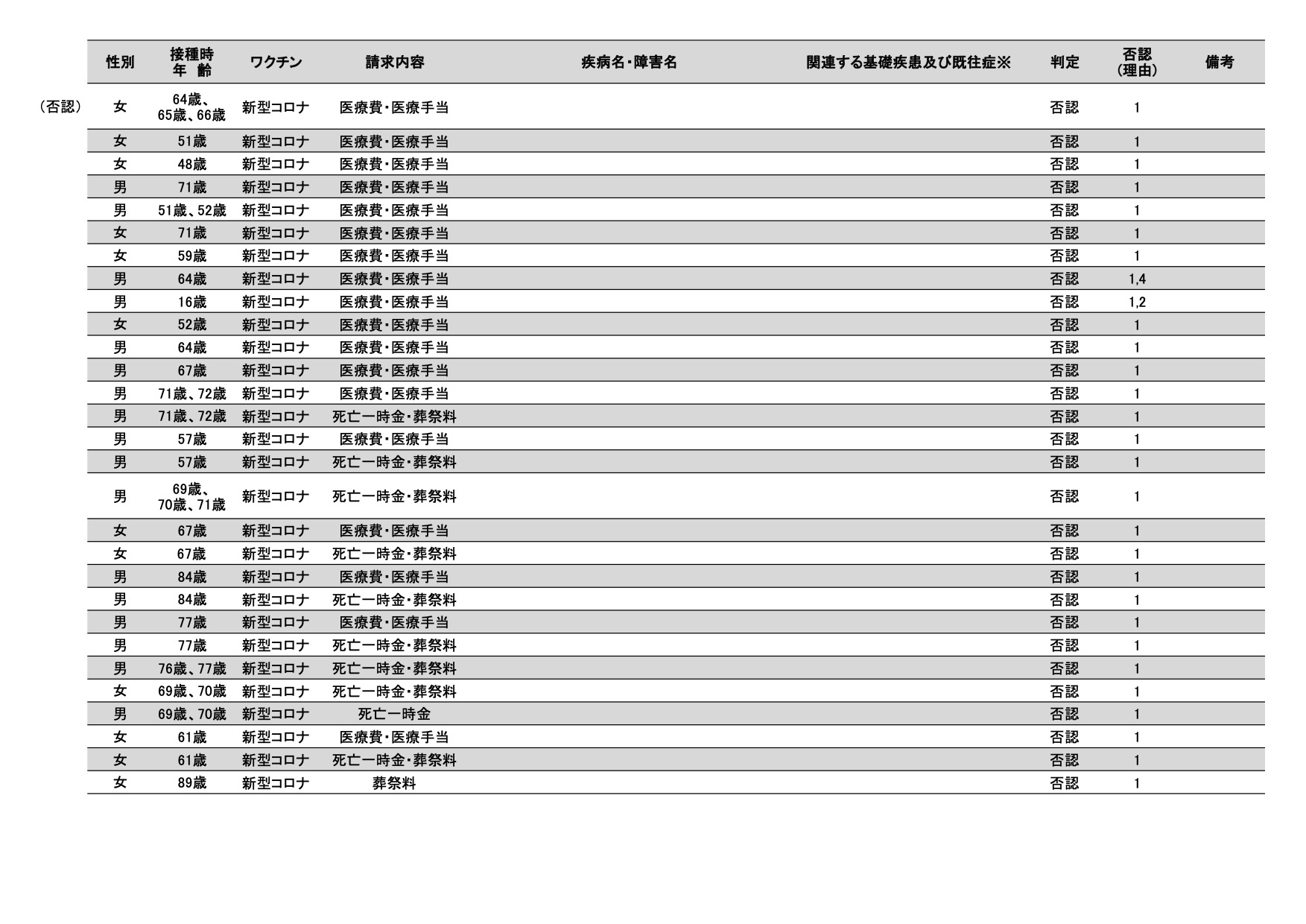 コロナ検証 その3 疾病・障害認定審査会 感染症・予防接種審査分科会 新型コロナウイルス感染症予防接種健康被害審査第一部会(認定部会) 審議結果から