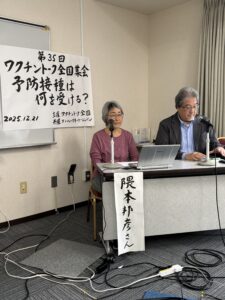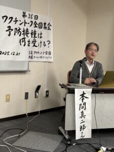 2025年12月21日(日)のワクチントーク全国との共催集会では35年間の予防接種被害者救済活動を検証し、今後どのワクチンを選ぶべきかを提言する集会となりました。