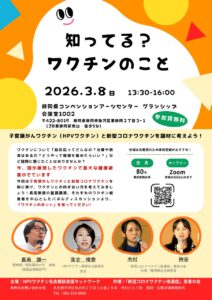 ▼2026/1/31(土) 13:30~HPVワクチンについて、みんなで考えよう HPVワクチン研修会 in